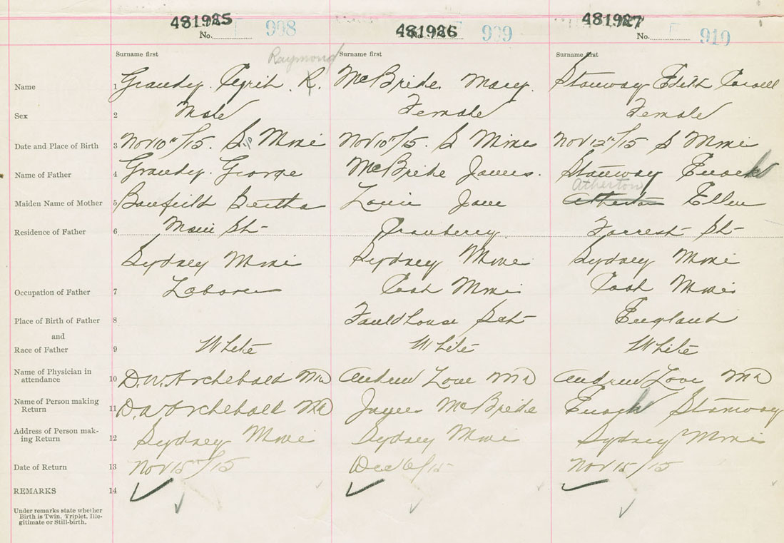 Female Birth Registration: Year: 1915 number: 48100927