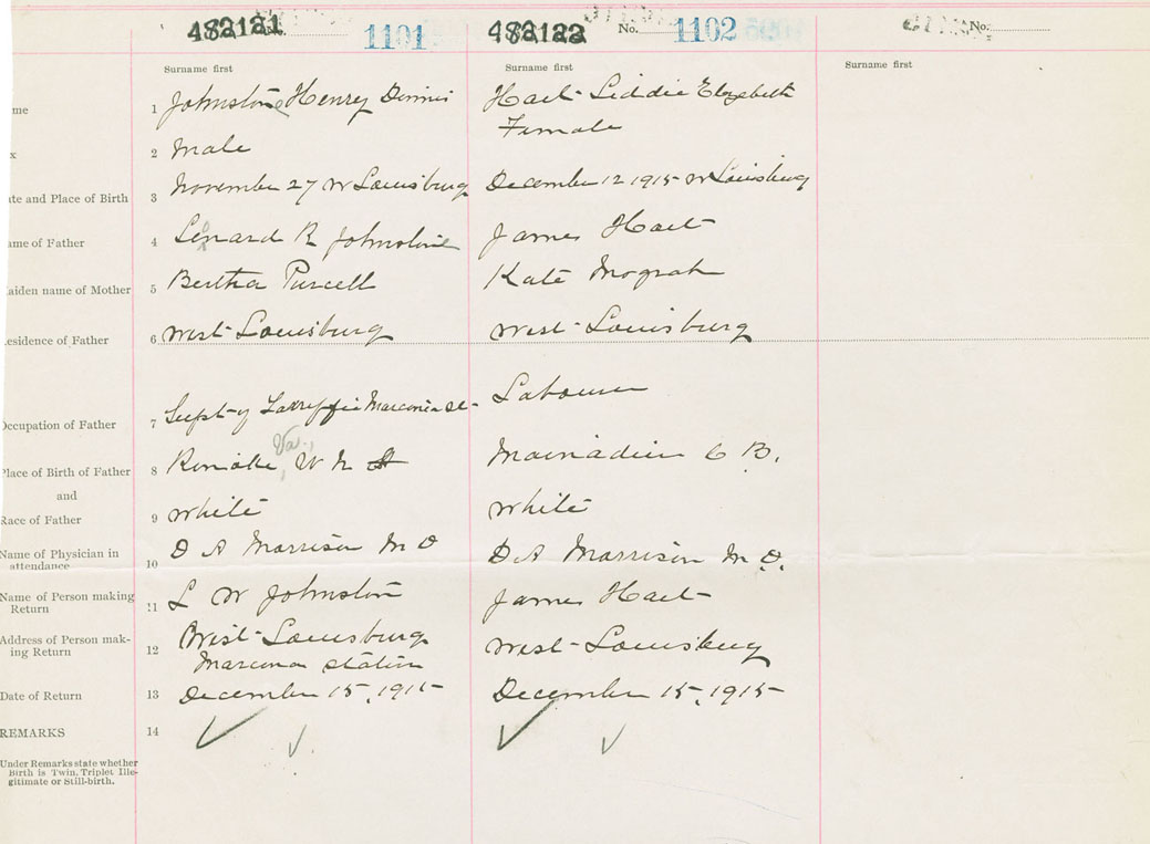Female Birth Registration: Year: 1915 number: 48200122