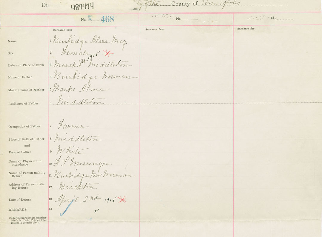 Female Birth Registration: Year: 1915 number: 48700474
