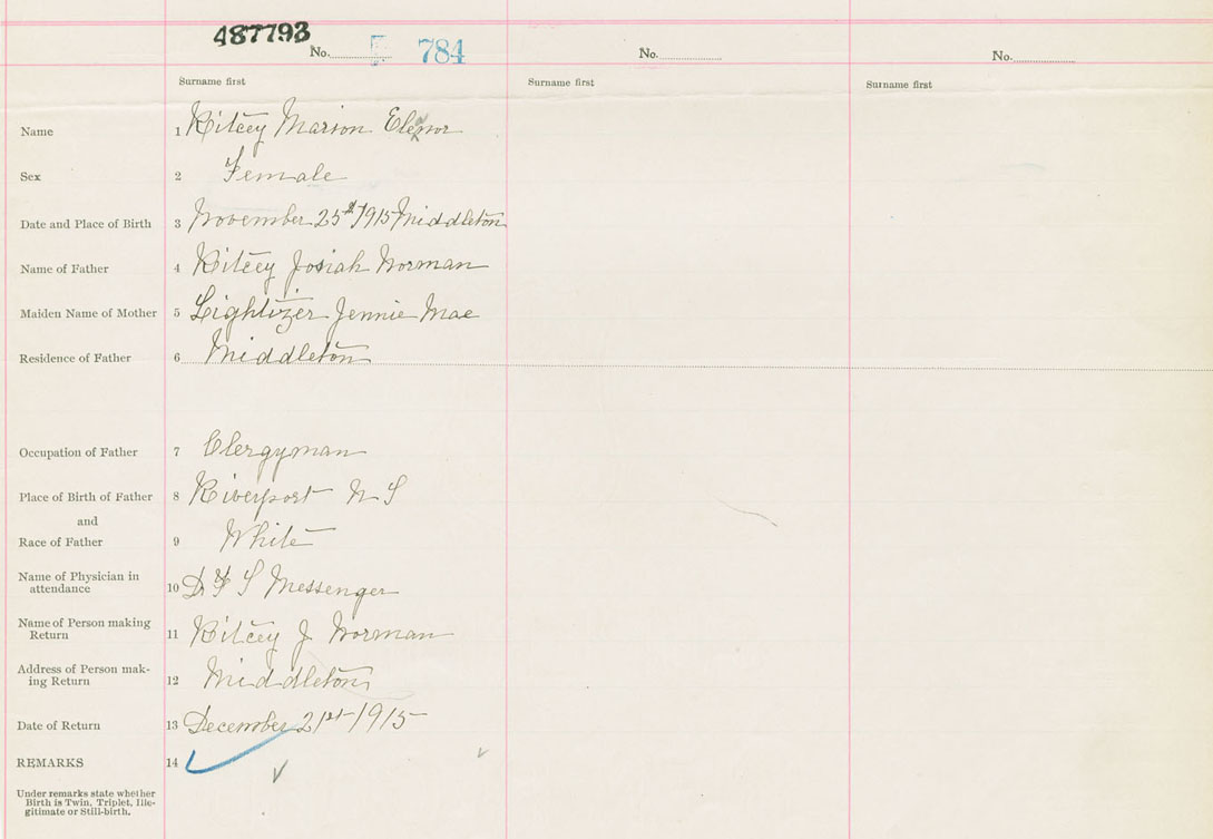 Female Birth Registration: Year: 1915 number: 48700793