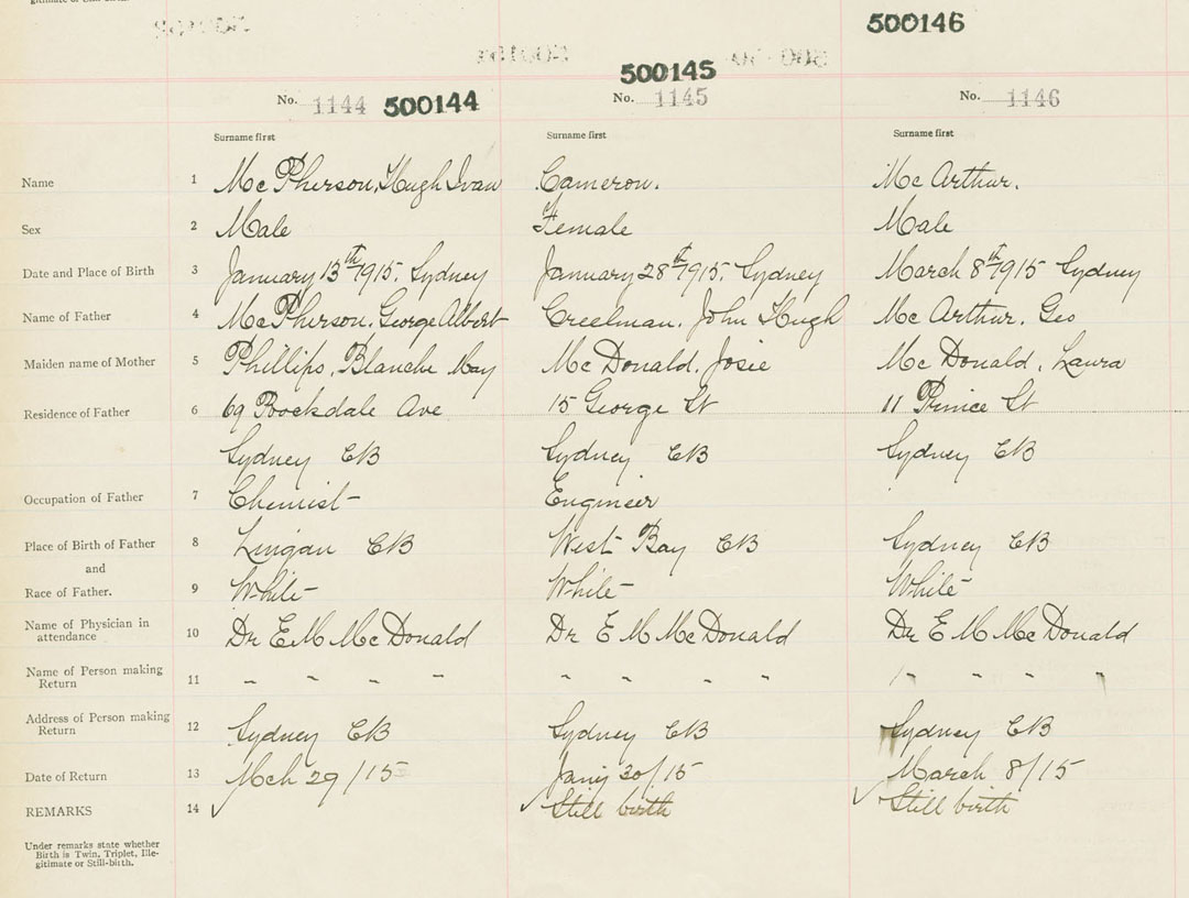 Male Birth Registration: Year: 1915 number: 50000146
