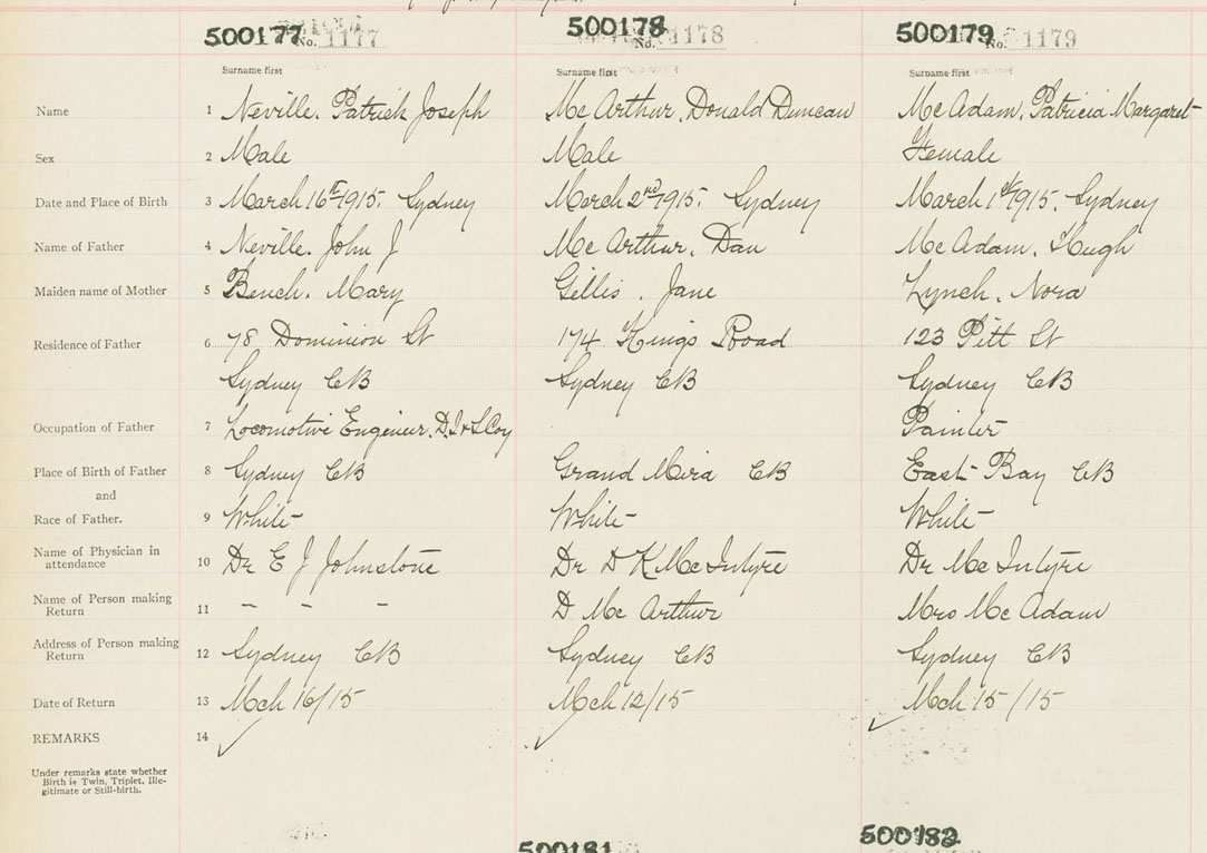 Female Birth Registration: Year: 1915 number: 50000179