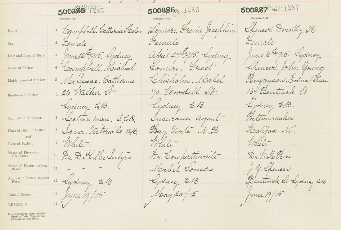 Female Birth Registration: Year: 1915 number: 50000287