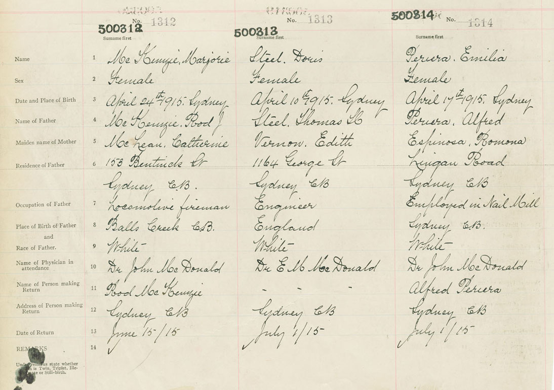 Female Birth Registration: Year: 1915 number: 50000314