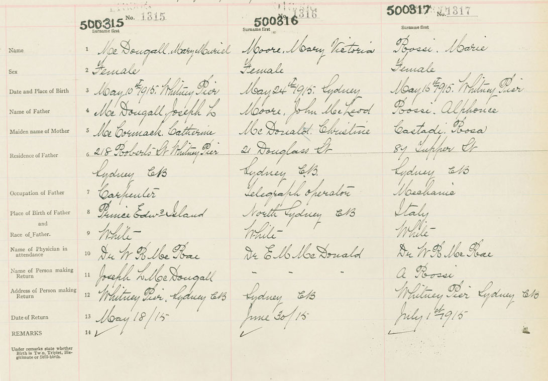 Female Birth Registration: Year: 1915 number: 50000317