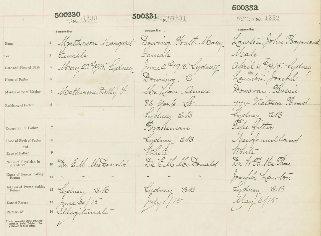 Male Birth Registration: Year: 1915 number: 50000332