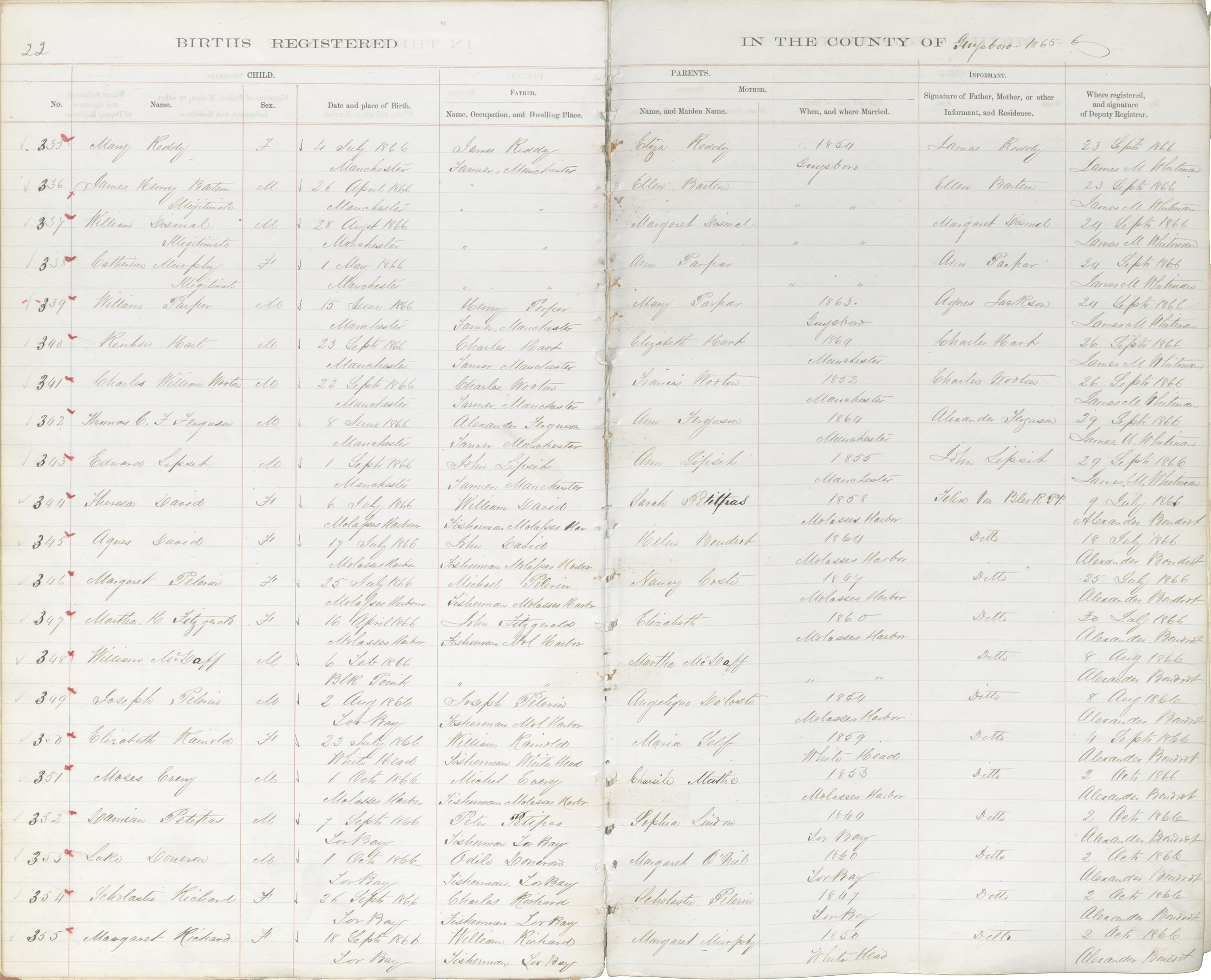 Birth Registration: Year: 1866 book: 1808 page: 22 number: 335