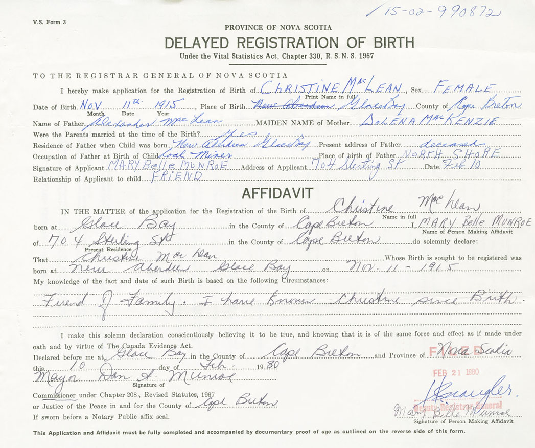 Nova Scotia Archives — https://archives.novascotia.ca/vital-statistics/birth/?ID=330352