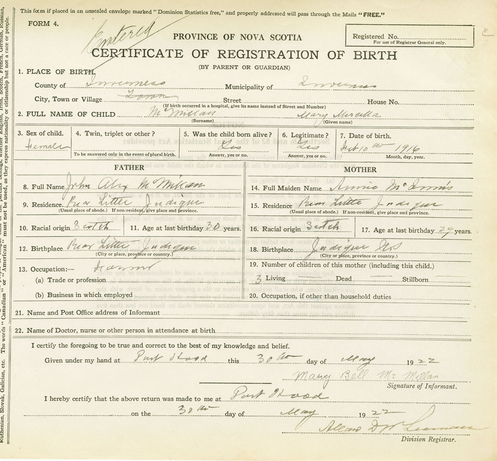 Nova Scotia Archives — https://archives.novascotia.ca/vital-statistics/birth/?ID=330491
