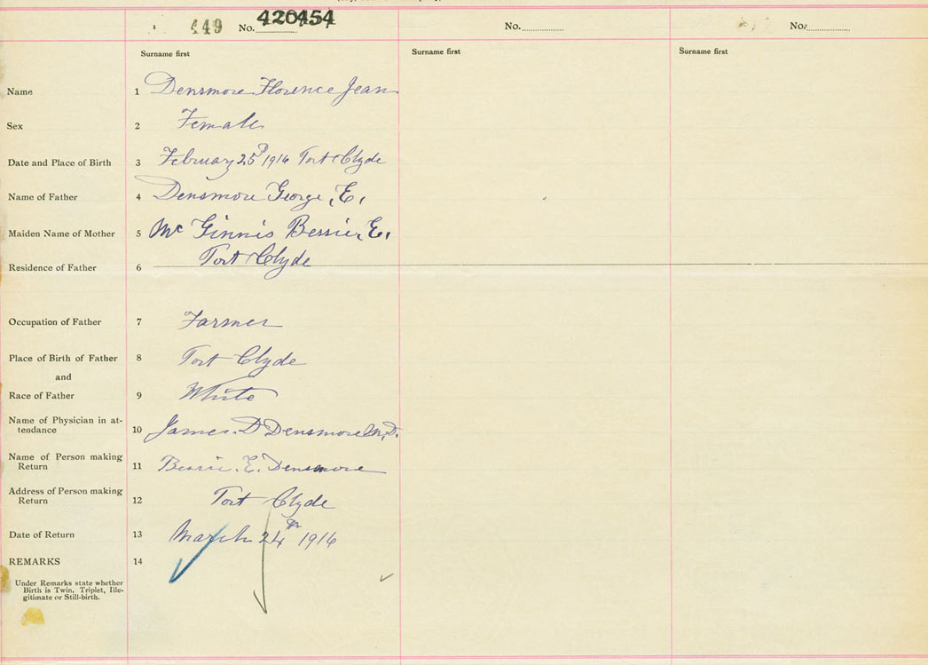 Female Birth Registration: Year: 1916 number: 42000454