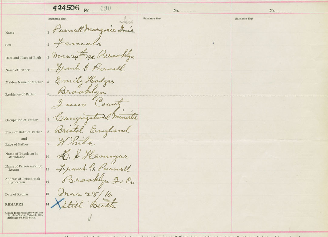 Female Birth Registration: Year: 1916 number: 42400506
