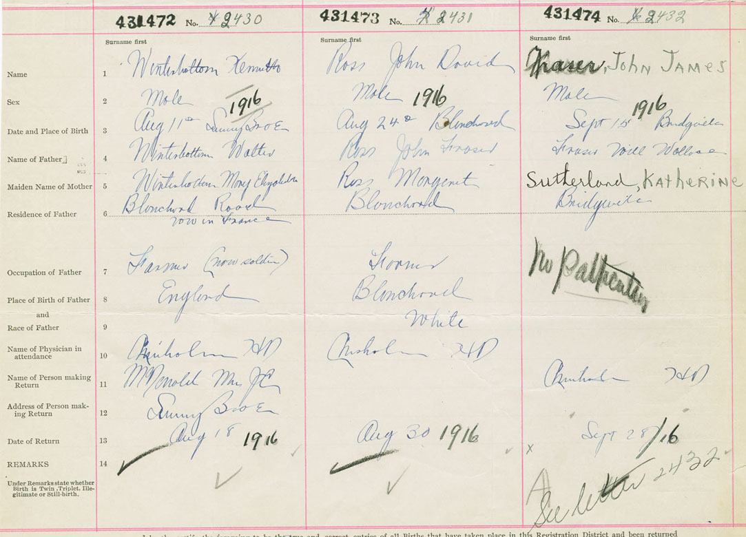 Male Birth Registration: Year: 1916 number: 43100474