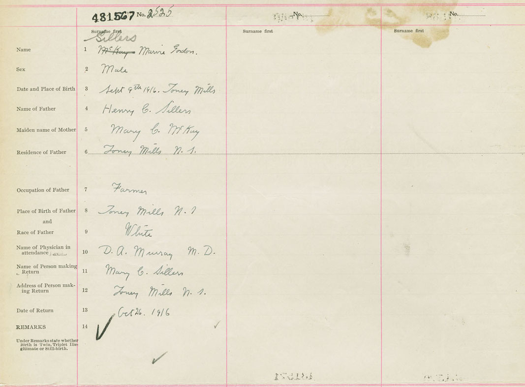 Male Birth Registration: Year: 1916 number: 43100567
