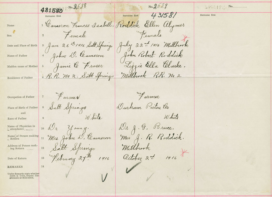 Female Birth Registration: Year: 1916 number: 43100581