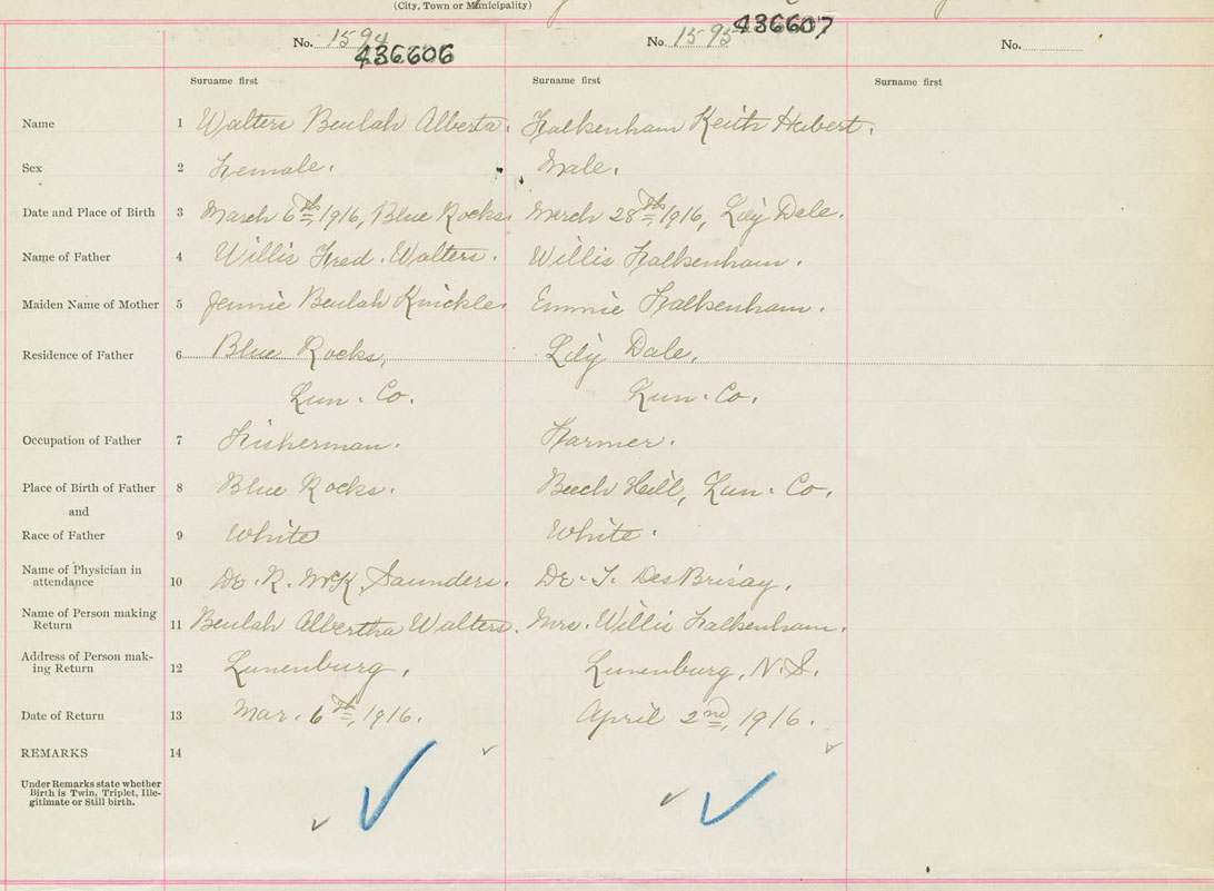 Female Birth Registration: Year: 1916 number: 43600606
