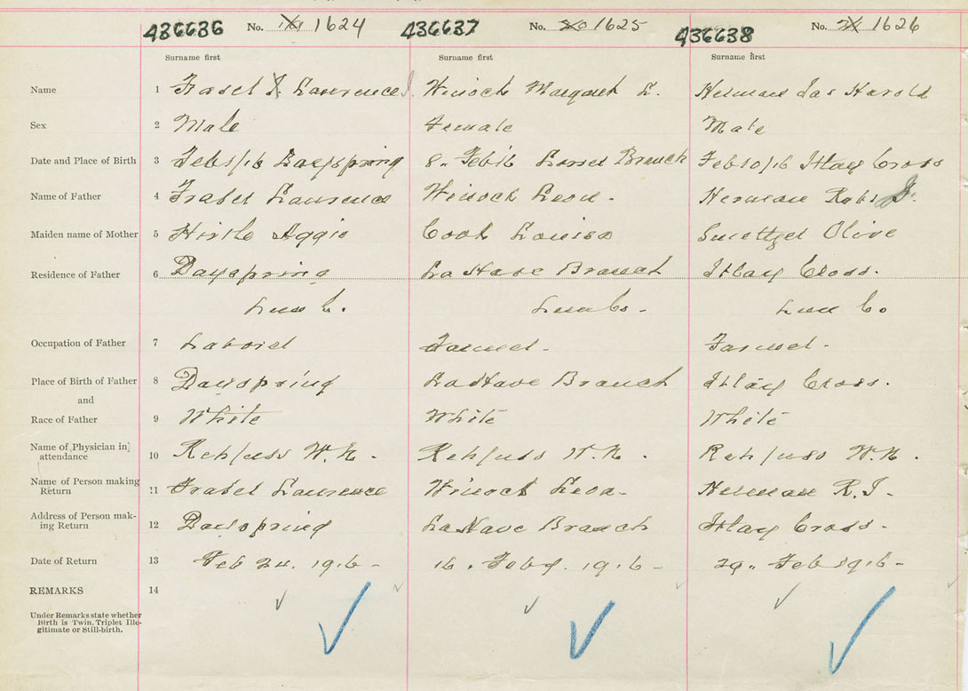Male Birth Registration: Year: 1916 number: 43600636