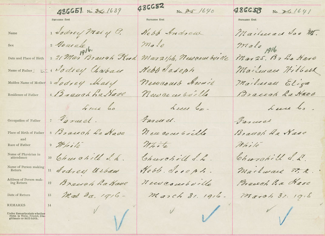 Male Birth Registration: Year: 1916 number: 43600653
