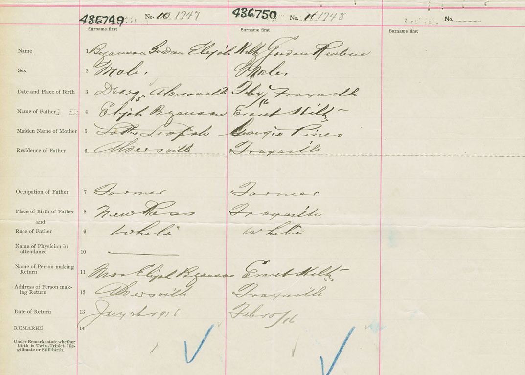 Male Birth Registration: Year: 1916 number: 43600750