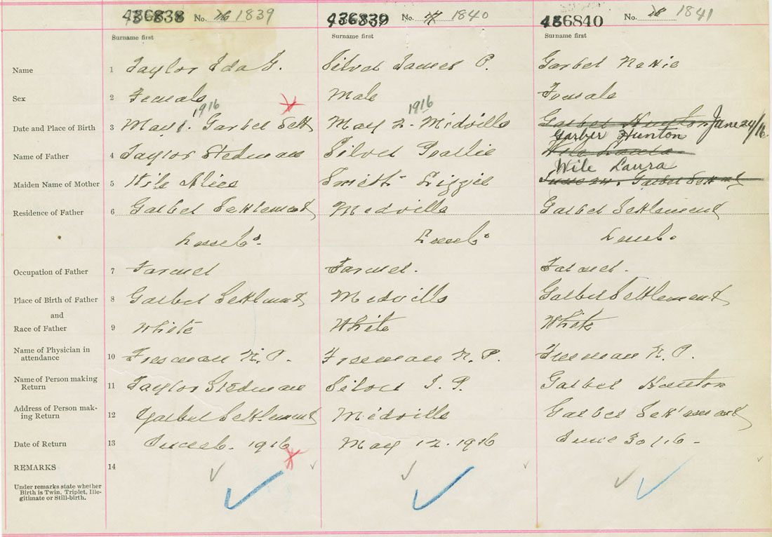 Female Birth Registration: Year: 1916 number: 43600838
