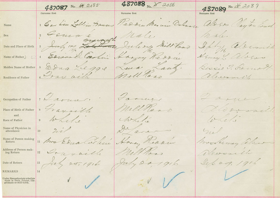 Male Birth Registration: Year: 1916 number: 43700089