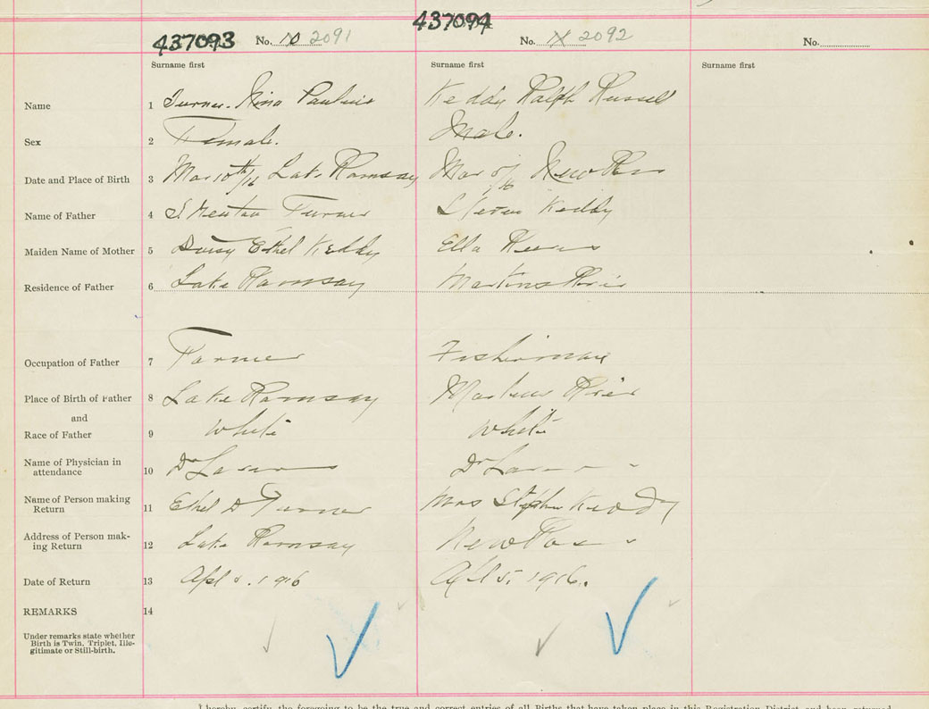 Male Birth Registration: Year: 1916 number: 43700094