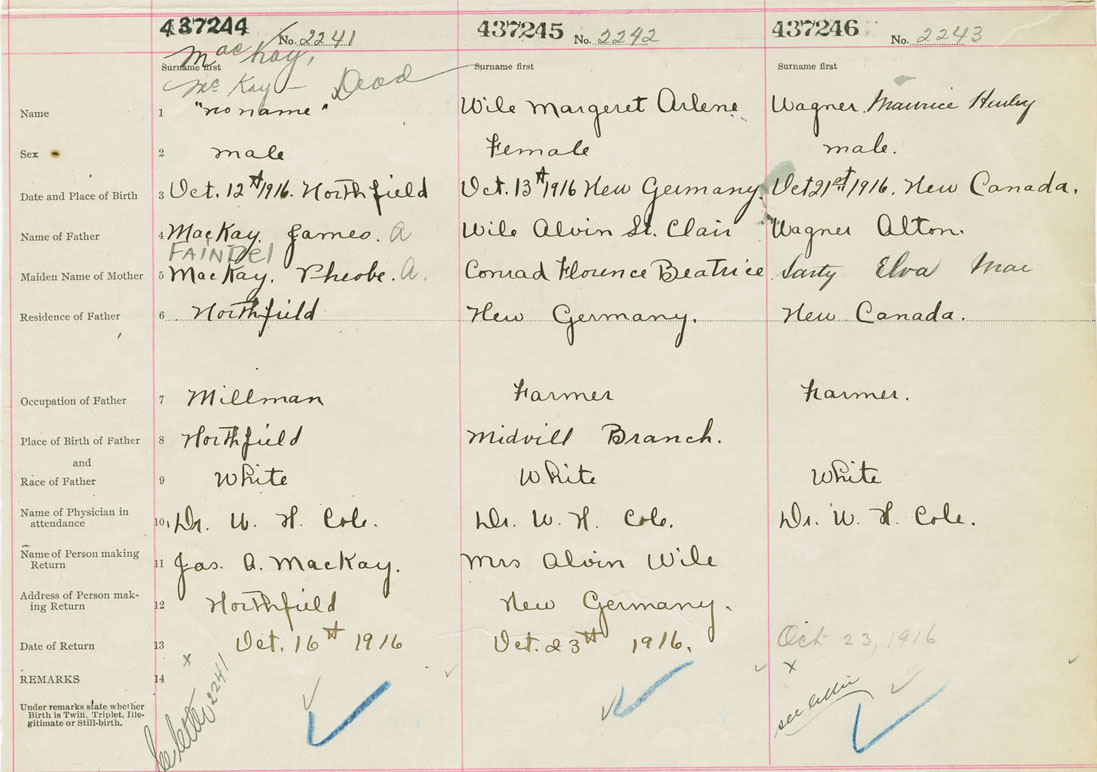 Male Birth Registration: Year: 1916 number: 43700244