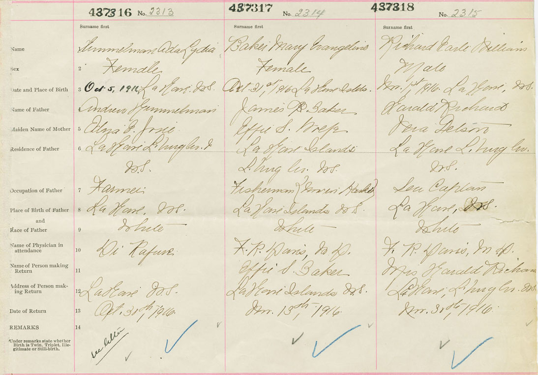 Female Birth Registration: Year: 1916 number: 43700316