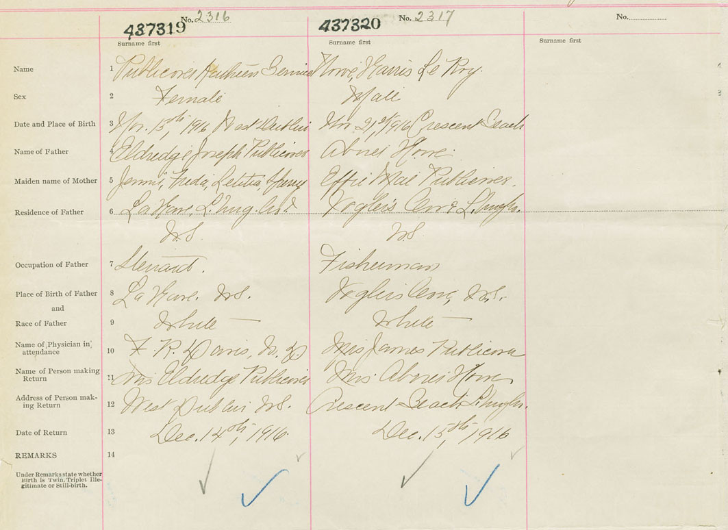 Female Birth Registration: Year: 1916 number: 43700319