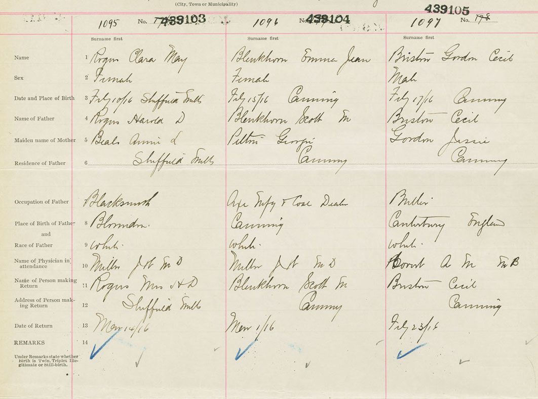 Female Birth Registration: Year: 1916 number: 43900103