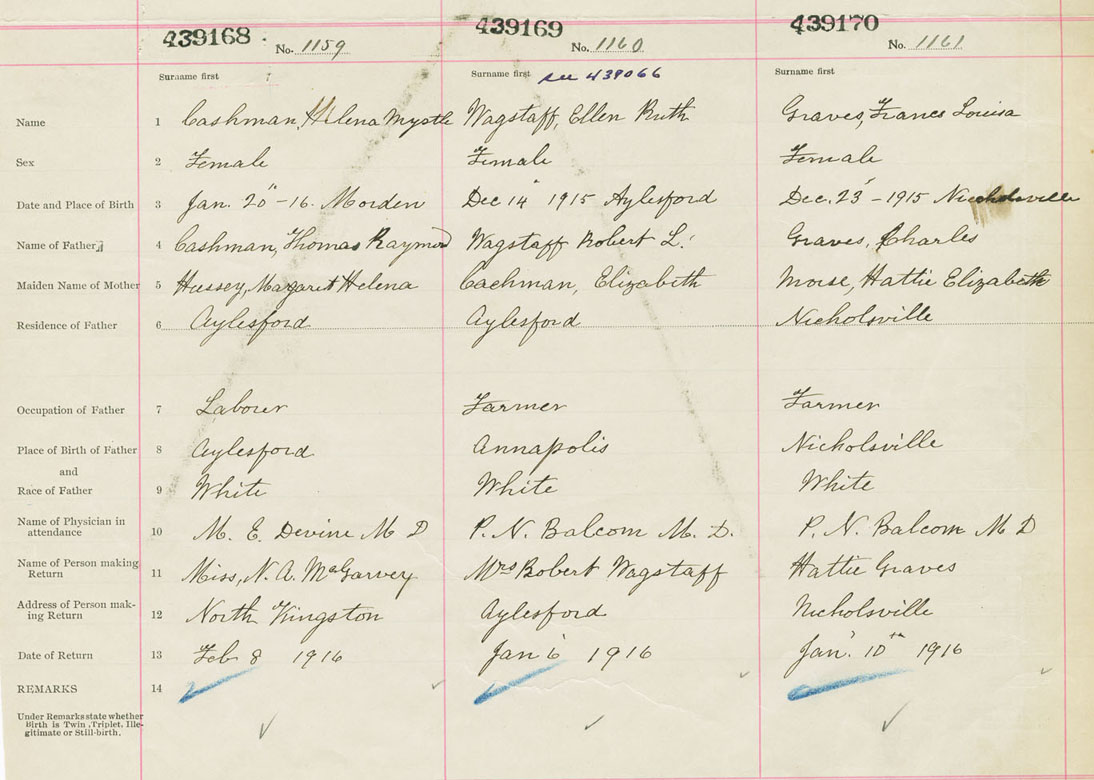 Female Birth Registration: Year: 1916 number: 43900168