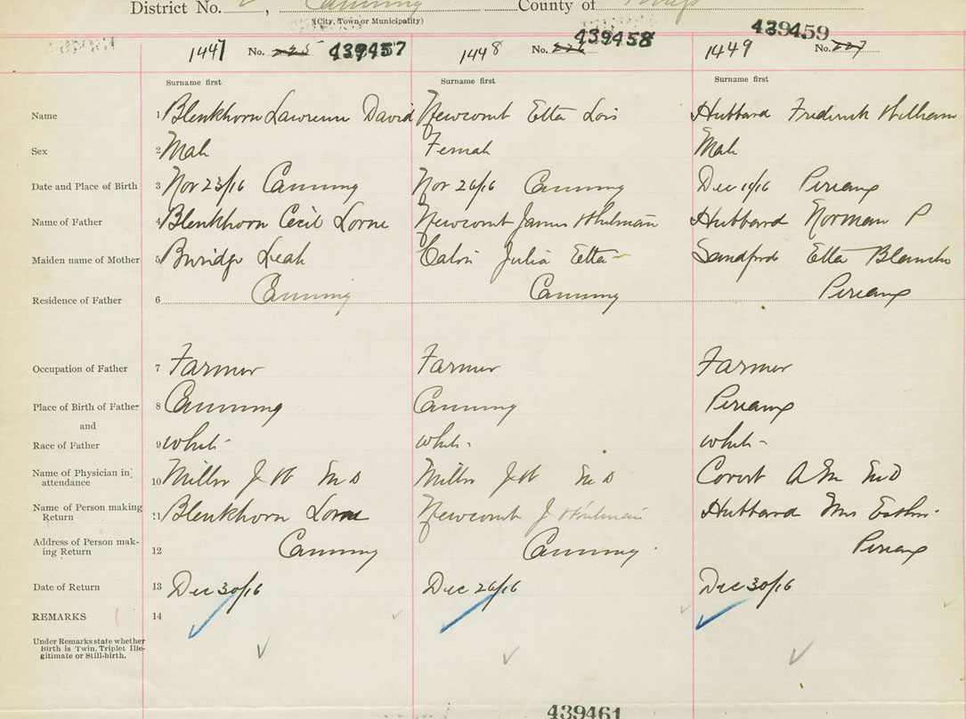 Male Birth Registration: Year: 1916 number: 43900459