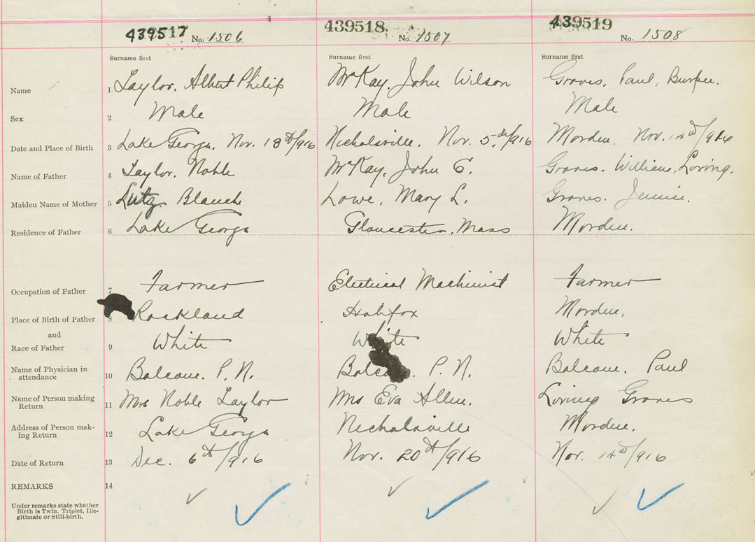Male Birth Registration: Year: 1916 number: 43900519