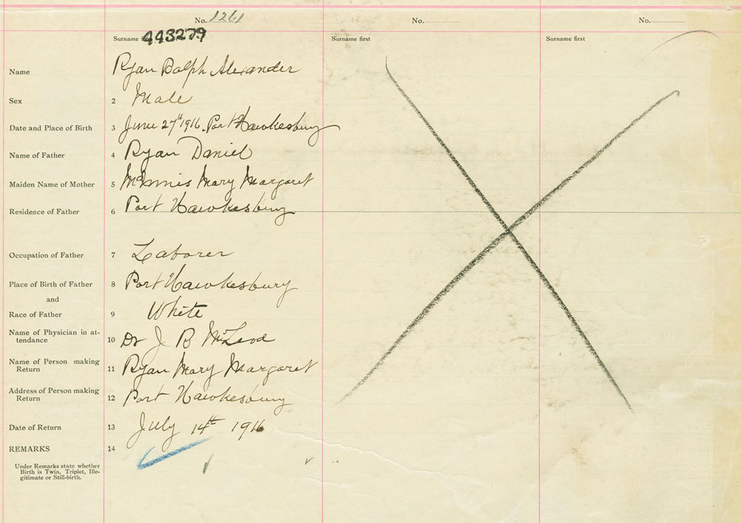 Male Birth Registration: Year: 1916 number: 44300279