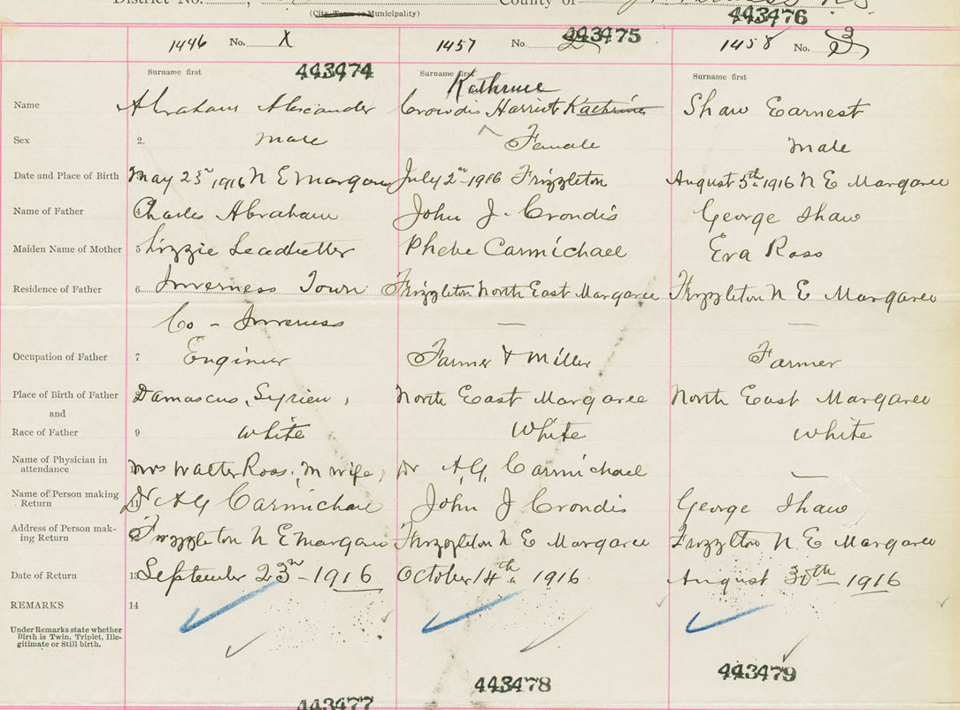Male Birth Registration: Year: 1916 number: 44300474