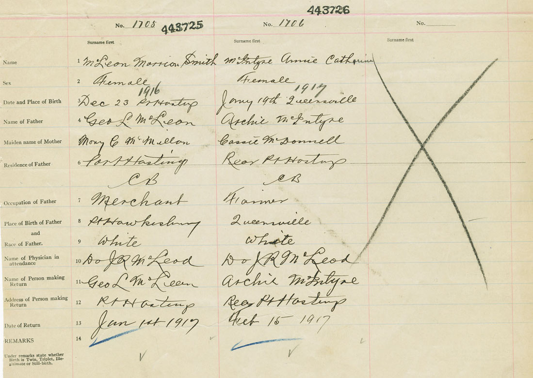 Female Birth Registration: Year: 1916 number: 44300725