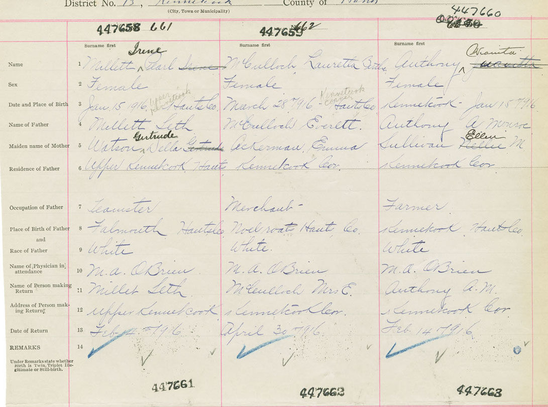 Female Birth Registration: Year: 1916 number: 44700660