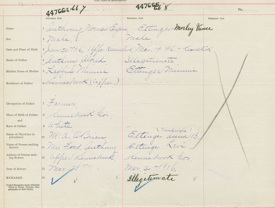 Male Birth Registration: Year: 1916 number: 44700665