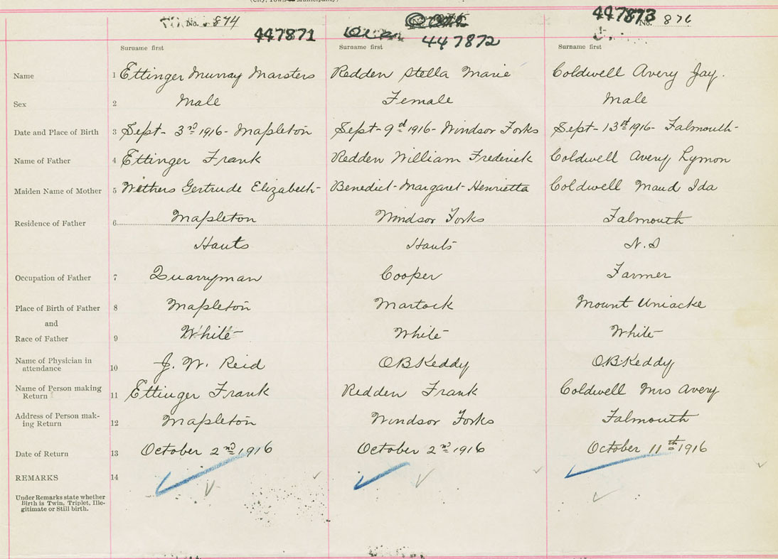 Male Birth Registration: Year: 1916 number: 44700873