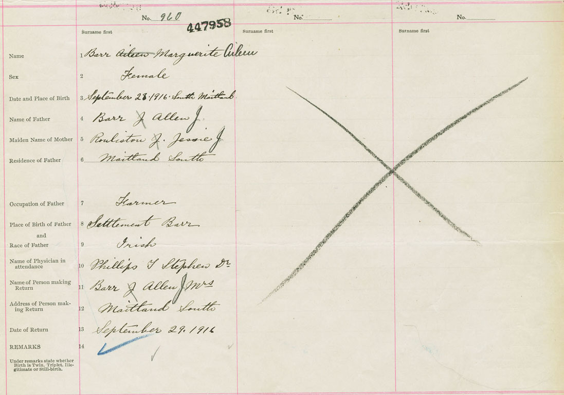 Female Birth Registration: Year: 1916 number: 44700958