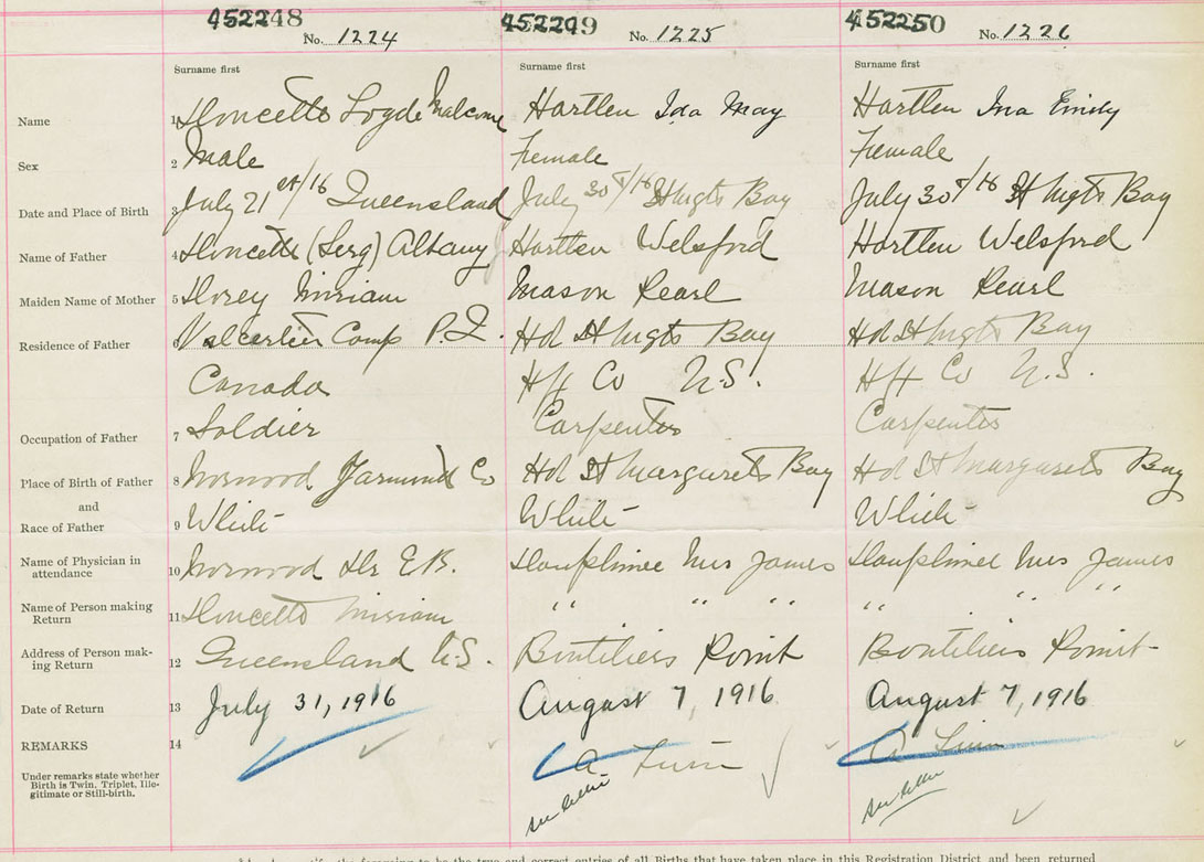 Female Birth Registration: Year: 1916 number: 45200250