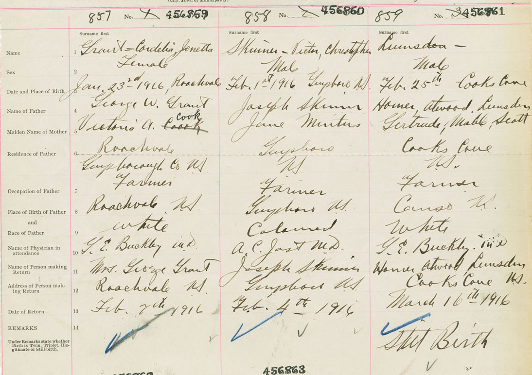 Female Birth Registration: Year: 1916 number: 45600859