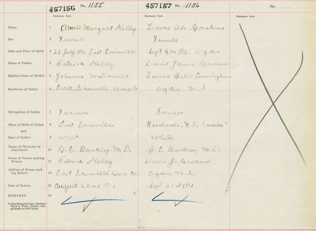 Female Birth Registration: Year: 1916 number: 45700156