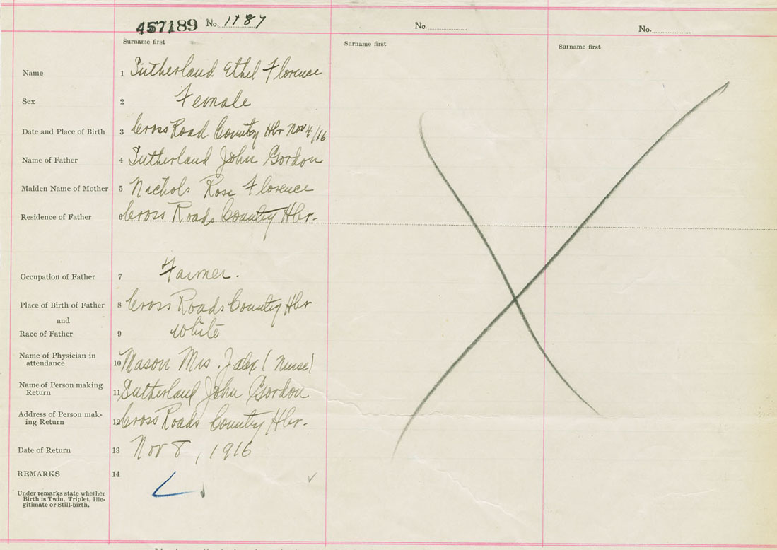 Female Birth Registration: Year: 1916 number: 45700189