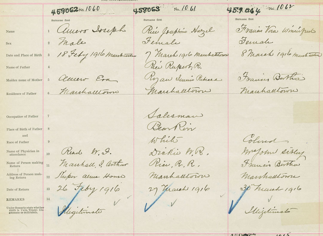 Male Birth Registration: Year: 1916 number: 45900062