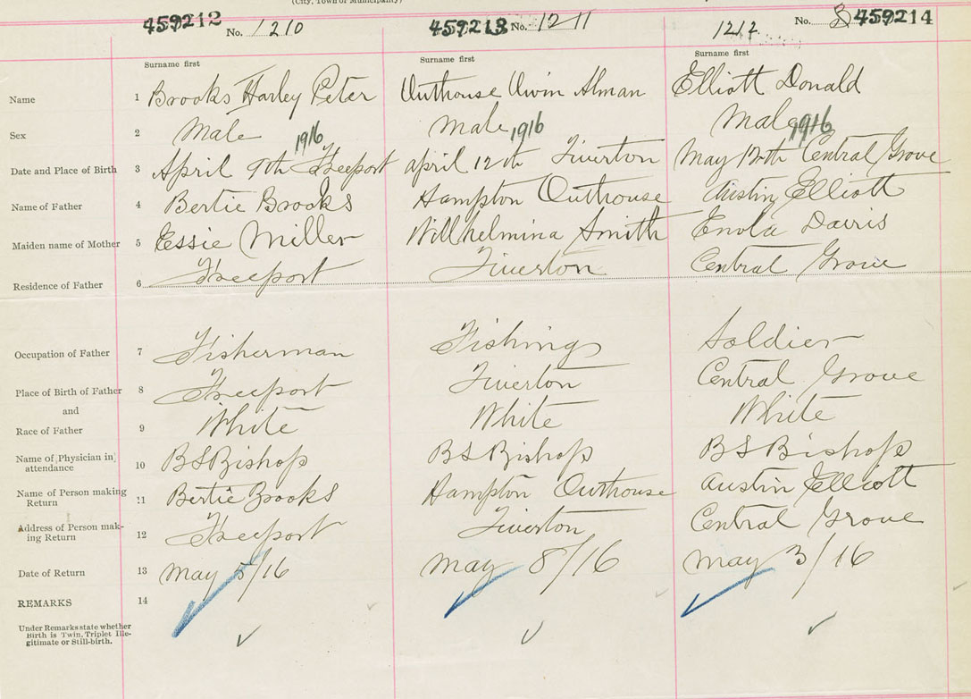 Male Birth Registration: Year: 1916 number: 45900214