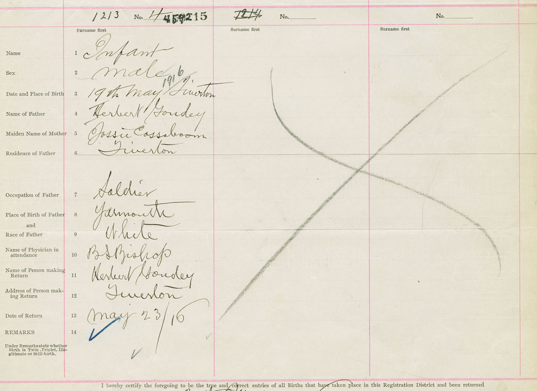 Male Birth Registration: Year: 1916 number: 45900215