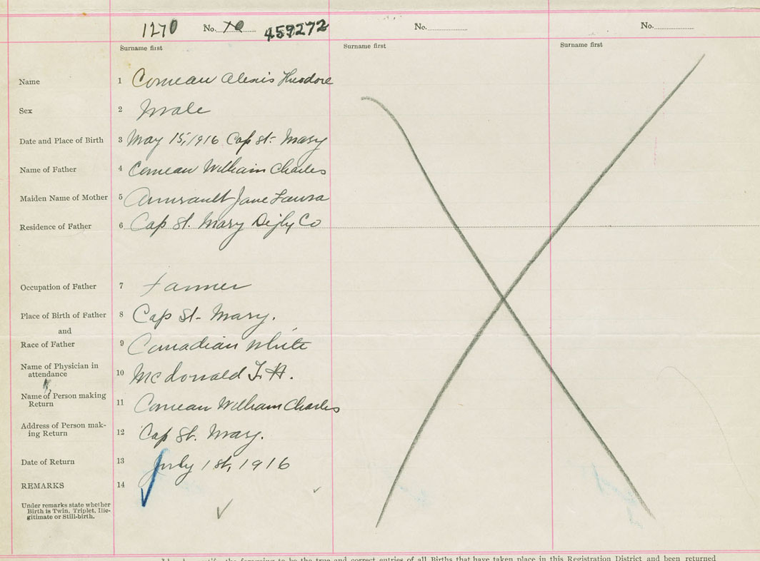 Male Birth Registration: Year: 1916 number: 45900272