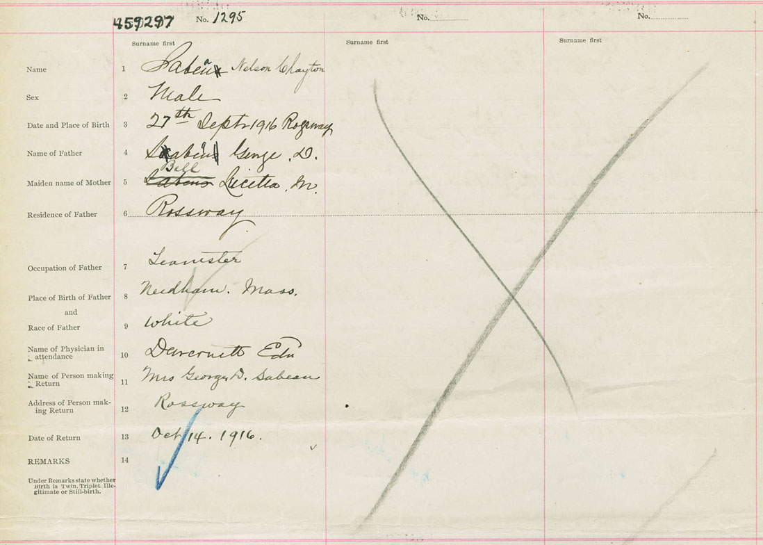 Male Birth Registration: Year: 1916 number: 45900297