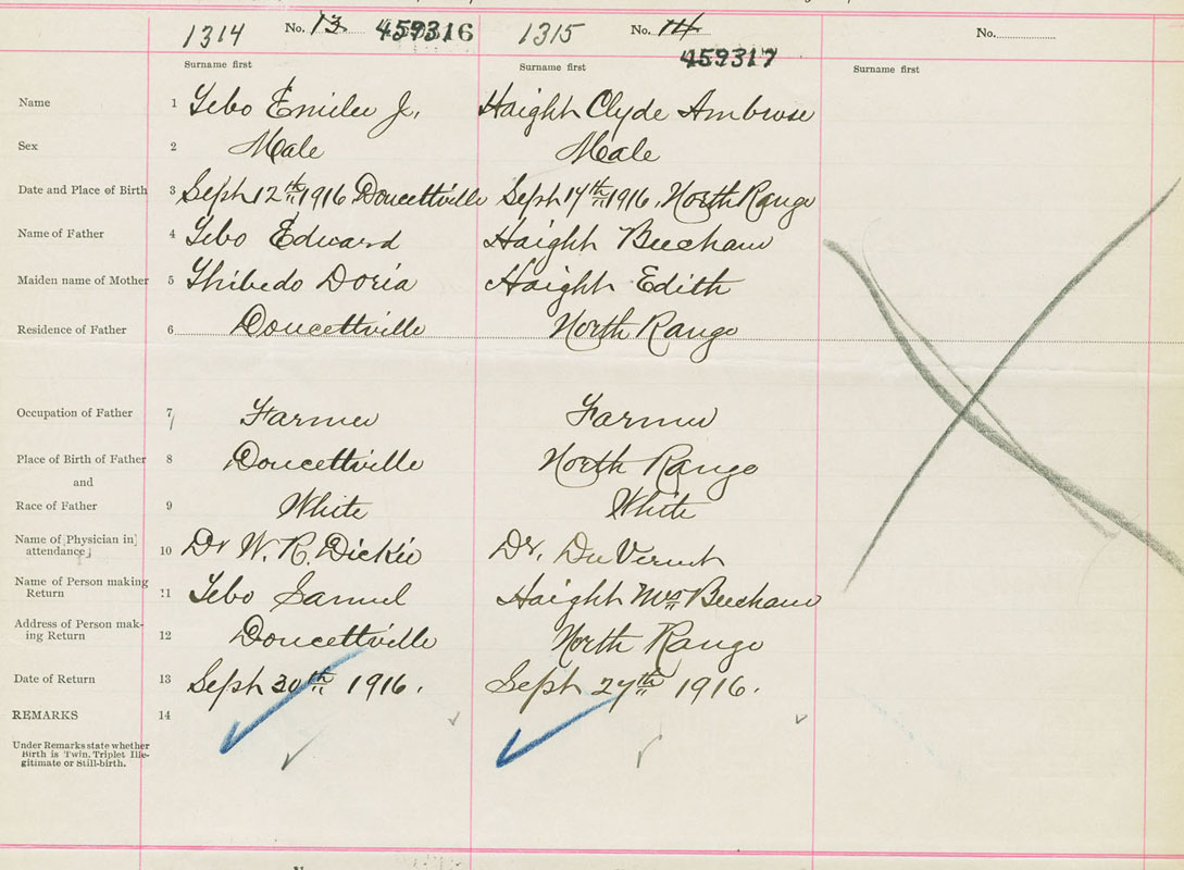 Male Birth Registration: Year: 1916 number: 45900316