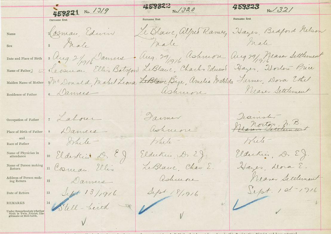 Male Birth Registration: Year: 1916 number: 45900321